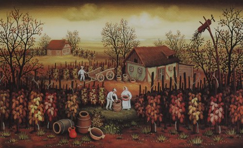 The influence of the Hlebine school was then decisive in his works. But soon he became a professional, freed himself from this influence and now stands out for individual characteristics, which rank him among the best painters of the ” naive circle of Podravina”